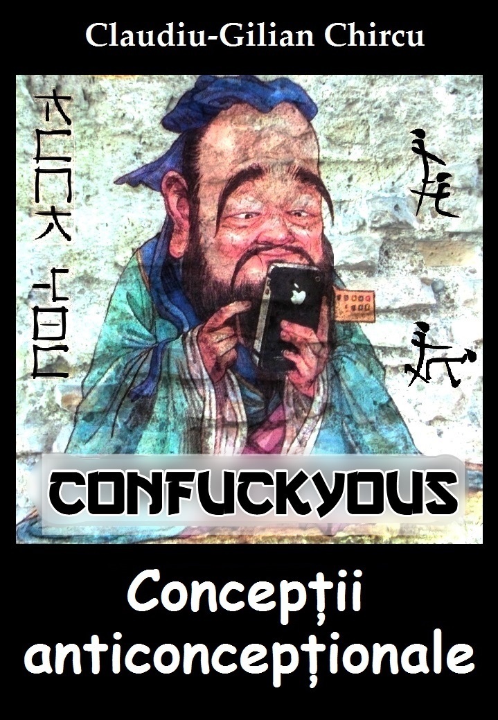 Și pentru că nu puteam să-mi atribui cu mândrie aceste concepții, am inventat un personaj căruia să i le pun în cârcă: Confuckyous, o parodie mai mult a mea decât a filosofului Confucius. Pentru că există în mine un mic Confuckyous care nu vrea să plece nici măcar exorcizat, darămite să fie eliminat ca pietrele de la rinichi. Poate există în fiecare dintre noi. Dar chiar nu vreau să știu prin ce orificiu a intrat acest ciudat adesea imatur și aberant, fără prea multă logică ori bun simț. Însă există și trebuie hrănit constant, altfel face scandal și pipi pe unde apucă. Ca o arteziană în bătaia uraganului.